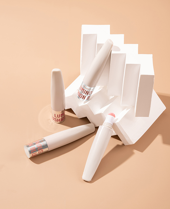 This is an air cushion head liquid blush that goes on with a poke, smudges naturally, and gives a finish that creates a delicate micro-pearl finish.