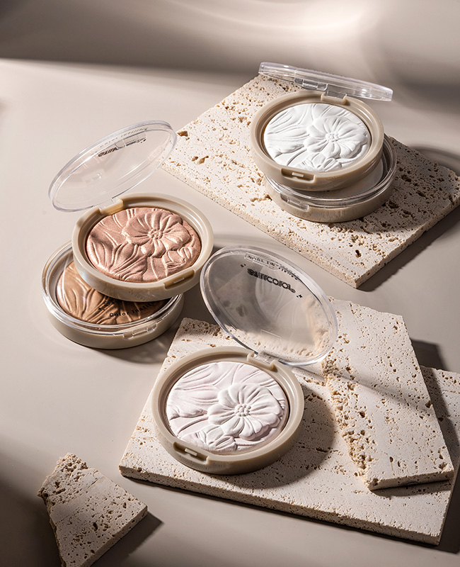 thermostatic baked powder, no fly powder, Upgraded grinding technology, texture more fine and colour rendering, can better fit the skin and anti-transfer, showing a clear matte effect.